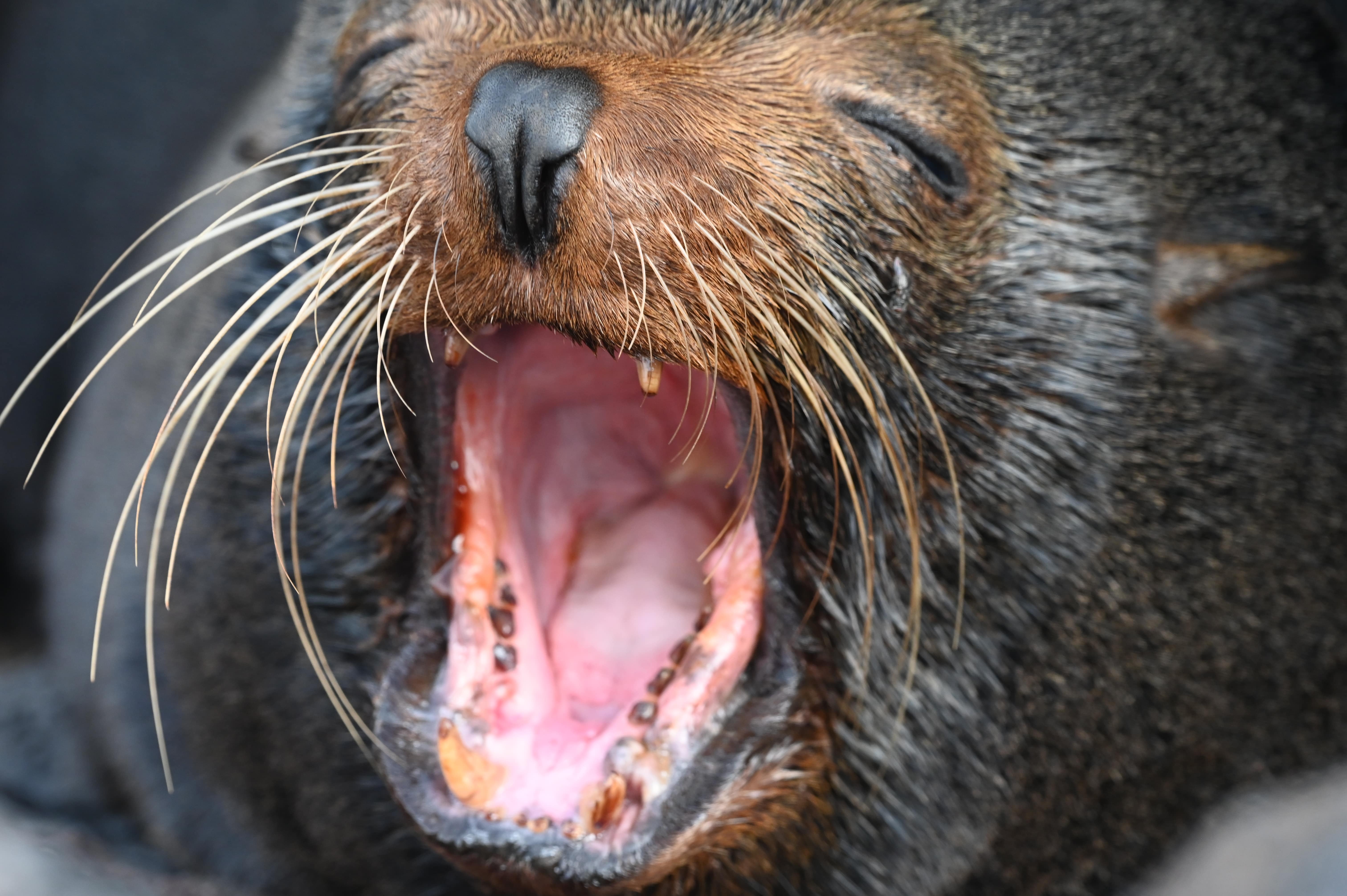 Fur seal yawning