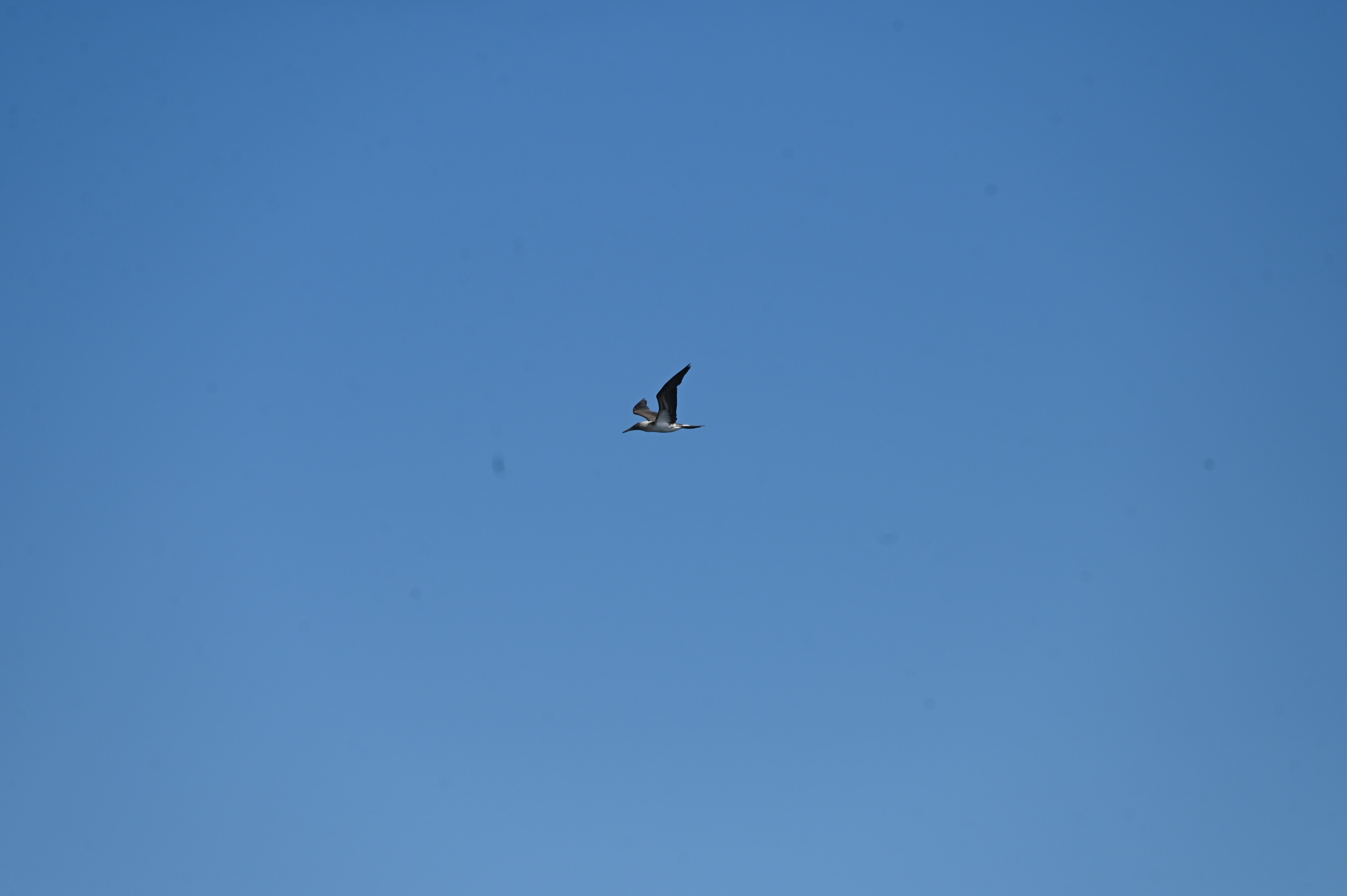 Blue footed boobie flying for hunt